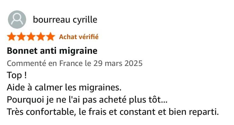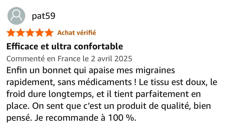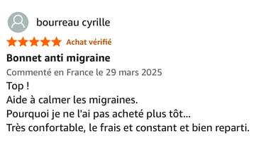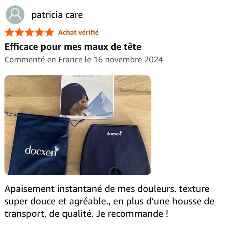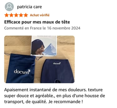 Découvrez les retours d'expérience de nos clients amazon satisfaits avec le bonnet anti-migraine Docxen.
