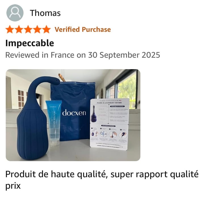 Découvrez les retours d'expérience de nos clients amazon satisfaits avec la Poire à lavement intime Docxen.